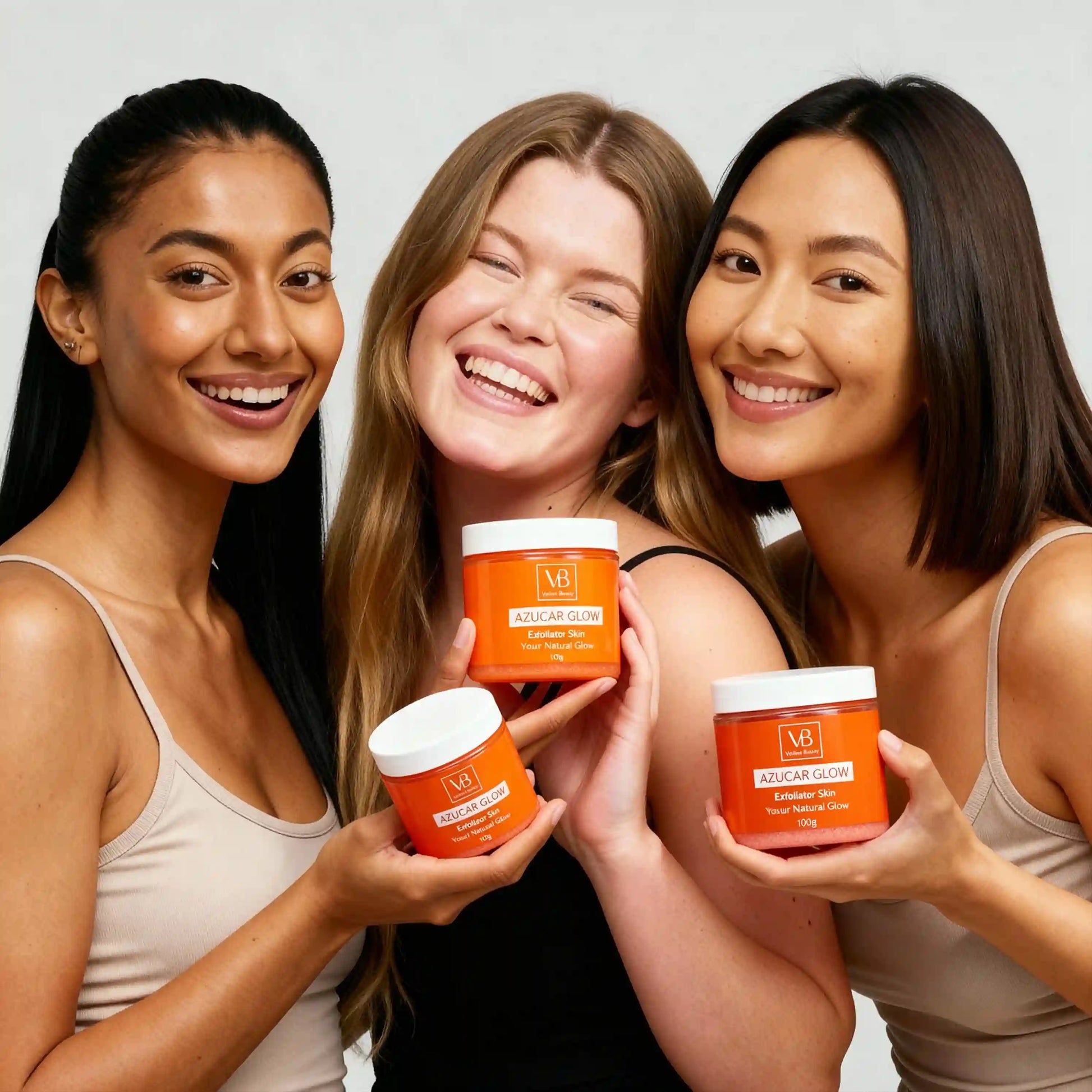 Azúcar Glow No solo blanquea culo o entre piernas, utiliza gránulos finos de azúcar natural que retiran las células muertas sin maltratar la piel.