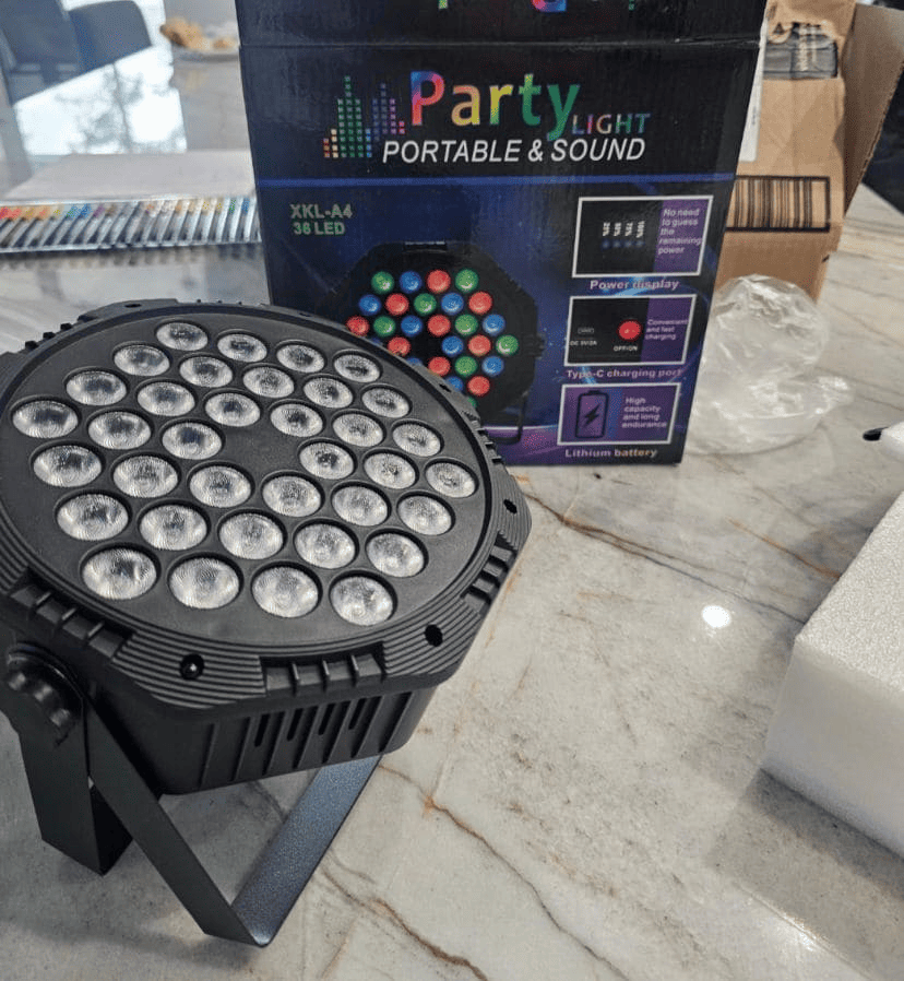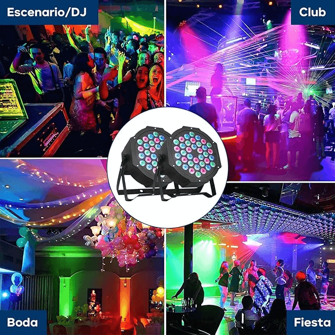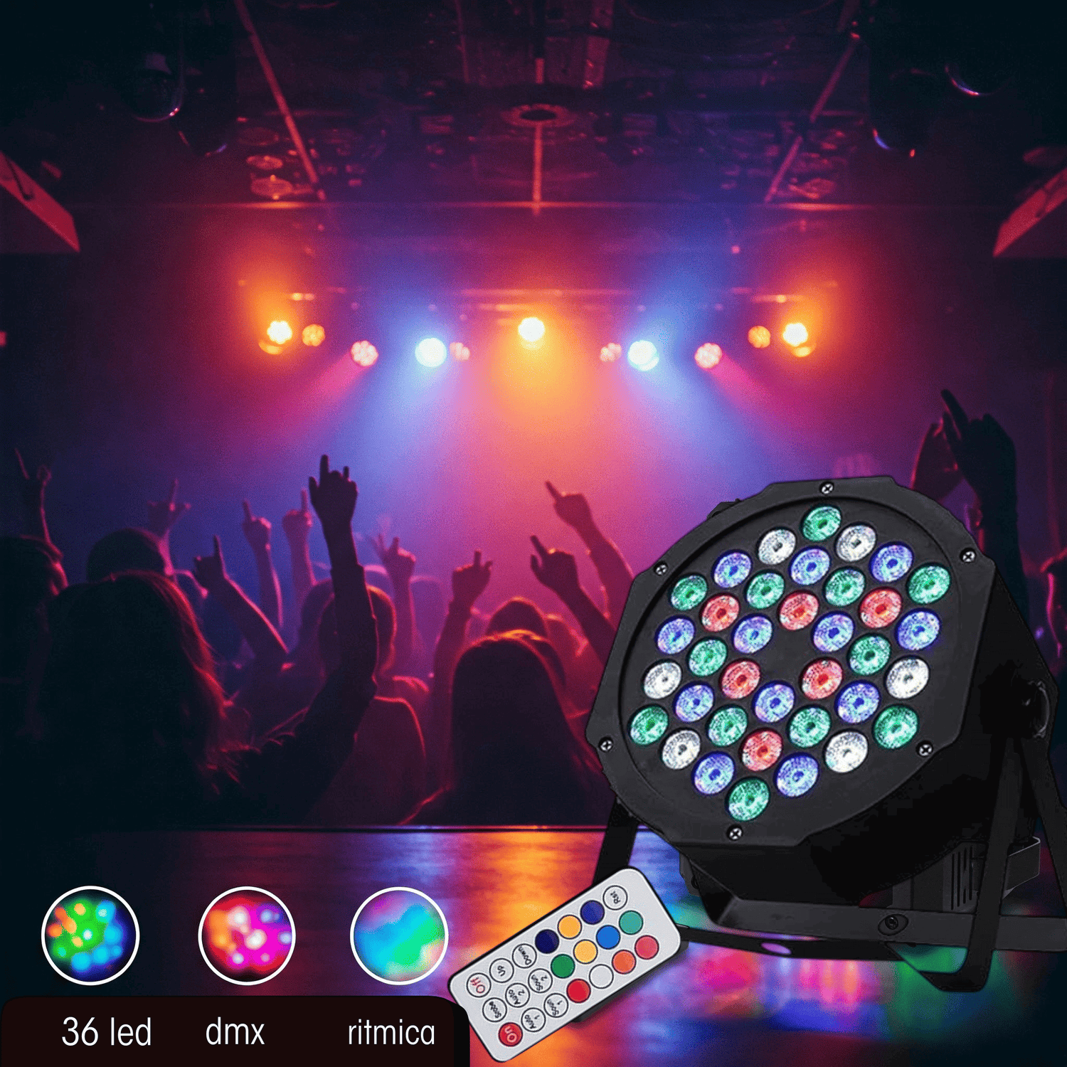 36 LED RGB con control remoto perfecto para fiestas, escenarios, bares o bodas.”