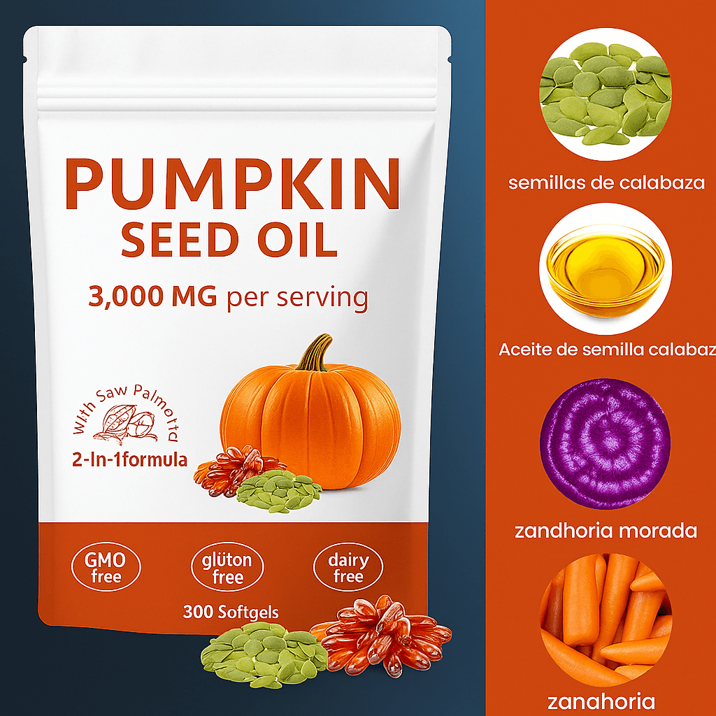 👉 Semilla de Calabaza + Saw Palmetto (3000 mg).